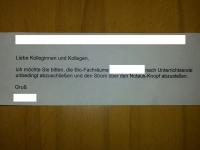 Bei diesem Zettel ist mir der Kragen geplatzt und ein großer Hinweis auf der Tafel hinterlassen wurden.