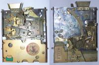 EDIT: Nur mal als Anschauungsobjekt. So sieht ein mechanischer Dreifachprüfer von NRI für 50Pfg, 1DM und 2DM aus. Solche Prüfer wurden in Musikboxen eingesetzt. Die Münze fällt oben in den Trichter und kommt entweder sortiert aus einer von drei Öffnungen an der rechten Seite (gültige Münzen) oder aus einer Öffnung auf der linken Seite (abgewiesen) raus.
