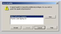 Nein, diese Frage stellt er mir nicht. Ich bin jetzt mit dem IE ohne Probleme reingekommen. Er fragte ob er das Java Applet ausführen darf, und das wars.
