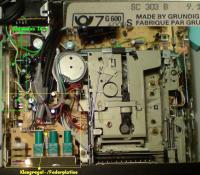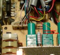 Weiter habe ich die Belastungswiderstände für den Player auf 150 Ohm verkleinert. Die Basswidergabe war mit dem 1uF Einkoppelkondensator nicht vergleichbar mit Cassetten- oder Radiowiedergabe. Also habe ich hier alte 6,8uF Tonfrequenzelkos mit parallelen Folien-Bypasskondensatoren(220nF) eingesetzt.