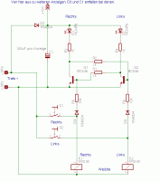 Brückengleichrichter hier bitte nicht einsetzen, da sonst der Bezugspunkt von den Transistoren nichtmehr stimmt.