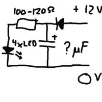 Diese letzte Schaltung ist so Korrekt. der Kondensator lädt sich dann durch die Diode sofort auf 12V auf, wenn der Computer angeschaltet wird, und wenn man den Computer ausschaltet entlädt er sich in die LED's. Ich würde so 1000uF/16V nehmen.