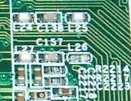 Mir ist auf einem Mainboard ein Teil abgebrochen. Es ist leider keine Bezeichnung drauf. Es ist (war) das Teil mit der Bezeichnung L26, ich gehe davon aus, dass es identisch mit den Nummern L24, L25 und L27 ist. Was könnte das sein, mich irritiert die Bezeichnung "L"?  |