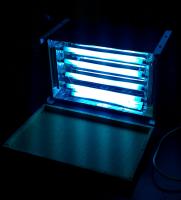 Ich war dieses Wochenende mal fleißig und hab meinen Gesichtsbräuner in ein Belichtungsgerät verwandelt, ist allerdings noch nicht zu 100% fertig. Ich muss noch die Glasplatte zuschneiden und mir einfallen lassen wie ich sie unbeschadet auf Leiterplatte und Layoutausdruck drücken kann.