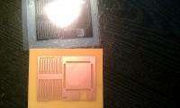 Ich habe heute 4 Testplatinen geätzt um zu testen was für eine Belichtungszeit am besten ist. Das beste Ergebnis hatte ich bei 3Min.15Sek..Siehe Bild.