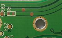 Und an Perl: Ich denke du könntest absolut recht haben mit deiner Annahme - hier die Rückseite der Platine direkt unter dem fraglichen hochohmigen Bauteil: Es sind 2 Durchkontaktierungen zu diesen dicken Leiterbahnen zu sehen: