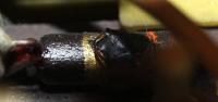 Halbverdeckt ist ein ebenfalls hellbrauner lackierter Keramischer Rohrkondensator zu sehen, der dürfte ebenfalls ok sein.