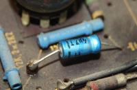 Der kleine blaue Elko sieht bei genauer Betrachtung durchdringend un-original aus, die anderen Bauteile sind viel sorgfältiger verarbeitet. Die Lötstellen sind aber gut gemacht.