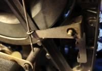 Leider ist mir dabei aufgefallen, dass es ein mechanisches Problem gibt und zwar beim Gestänge für den Geschwindigkeitsumschalter. Das abgebildete Gestänge bedient einen Umschalter, ich nehme an der schaltet die Entzerrung für die jeweiligen Geschwindigkeiten um. Jedenfalls fehlt dort irgendetwas, die Stange rutscht einfach lose durch den Hebel, statt von ihm nach oben geschoben zu werden.