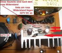| ...vor Widerstand die 327V und nach Widerstand 131V DC Der Elko ist aber nur bis 50V geeignet... |