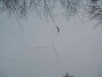 Vermutlich dachten die Kraniche daß der Winter dieses Jahr ausfällt. Jetzt haben sie gemerkt, daß das nicht so ist und ziehen gen Süden.