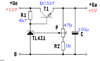 Und mein 7805 kommt sozu sagen zwischen T1 und R3 rein?