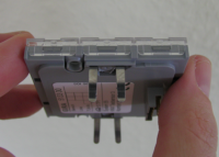 Schließlich sieht man einen (anderen) Tastsensor 3 in montiertem Zustand. Hier sind Clips quasi im Rahmen und die Wippenabdeckungen verdecken die Befestigungsschraube (hier ist als Demonstration nur ein Clip montiert und die Schraube liegt noch frei).