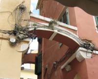 Aus Griechenland erinnere ich mich besonders gerne an die Freileitung, die mit 1,5er-Einzelader am eisernen Terassengeländer abgespannt war.