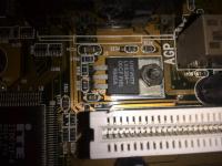 Dieses Modell ist dafür bekannt, das ein bestimmter Lastregler, nämlich derjenige am AGP Port rechts, ziemlich warm wird und dieser Lastregler (Es handelt sich um den Linfinity LX8383A) sowieso bei einer potenteren Grafikkarte dann quasi überhitzt und abschaltet. (z.B. bei einer Voodoo3 AGP). Auf den Bilden ist dies das letzte Bild von unten.