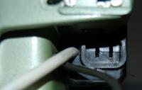 Dieser hat zum Anschluss des Nähmaschinenlichtes eine integrierte Steckdose. In der Beschreibung wird sie als "Kleinsteckdose" betitelt.