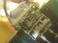 Die Elektronik der LED-Leuchtmittel ist da mittels Silikonpampe in den Sockel hineingepappt. Auf der Platine befindet sich ein Gleichrichter, bestehend aus vier Schottkydioden und einem Elko als Siebung. Die Regelung übernimmt ein MC34063. Dessen Drossel ist auf der Rückseite der Platine neben dem Elko.