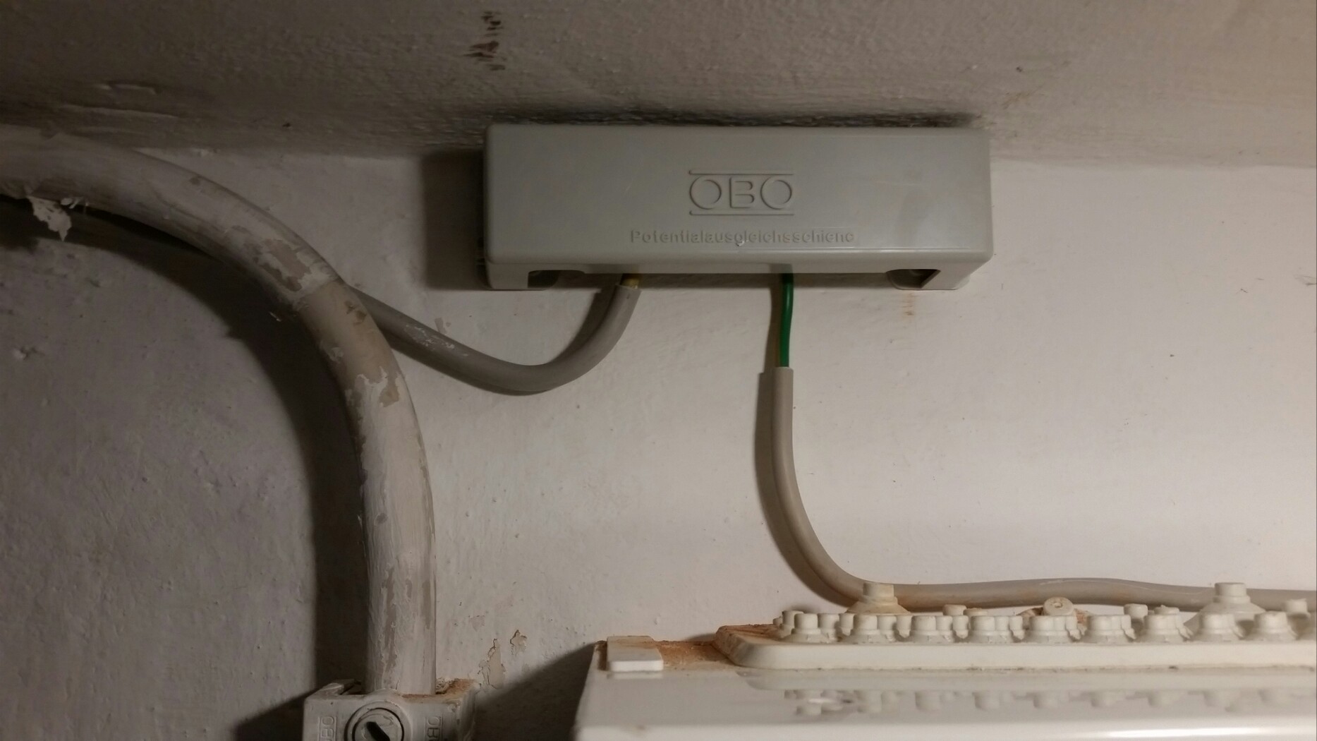 @Primus Die Hauptpotentialausgleichsschiene ist für mich das Ding, das auf der einen Seite mit dem Erder, auf der anderen Seite mit z.B. der Wasserleitung, dem TV-Kabelanschluss oder eben dem PE(N) der Stromleitung verbunden ist. Google liefert bei einer Suche nach "Hauptpotentialausgleichsschiene" auch dementsprechende Bilder. Diese Schiene ist bei uns nicht verblombt, bei dir?