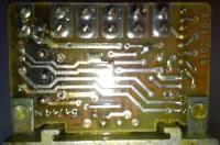 Die Leiterzüge sind recht schwierig verfolgbar, da wohl zuerst die mechanische Anordnung der Bauelemente festgelegt und dann das Layout entworfen wurde. Auf der zweiseitig ausgeführten Platine wechseln Leiterzüge zum Teil 3x die Ebene und es ist auch noch ein zweiter Einbauplatz für einen Thyrisor mit anderer Anschlußfolge vorgesehen.