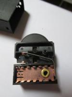 Dann habe ich den Regler ausgebaut und ins Gehäuse geschaut. Wie es dort aussieht seht ihr auf den Bildern. Weder lose Teile noch all zu viel Staub. Der Hebel auf dem Bild wird tatsächlich auch nur bei höchster Stufe auf den darunter liegen Kontakt gepresst. Für die Stufen 1-5 ist dieser Kontakt unterbrochen.