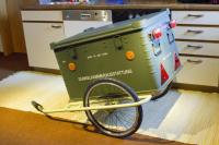 In meinen Einkaufsanhänger gehen übrigens 240 Liter rein, also locker ein komplett vollgefüllter Einkaufwagen. Wasserdicht ist die ganze Sache auch noch.