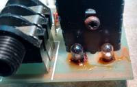der Verstärker funktioniert eine bestimmte Zeit wenn mit viel Power gespielt wurde dann schaltet der Ton ab (ich denke daß es nur der Ton ist). Nach 15-30 Minuten Wartezeit schaltet er wieder an. Bei göffnetem Gehäuse schaltet er nicht ab, deswegen nehme ich an daß das ein Temperaturproblem von einem oder von bestimmten Bauteilen ist! Die 2 Leistungstransistoren im Bild Vorne_links werden bei geöffnetem Gehäuse ca. 60° heiß. Die Lötstellen und die Bauteile habe ich einer eingehenden Sichtprüfung unterzogen jedoch nichts feststellen können was dazu führen könnte. Einen Schaltplan habe ich gesucht aber nicht gefunden.