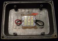 Ich habe mir nun, bedingt durch meine Erfahrung über den Defekt der LEDs in den Lampen, Ersatz-LEDs bestellt und geliefert bekommen. Heute habe ich mich noch mal der LEDs beraubten Lampe gewidmet, indem ich die nun fehlenden LEDs durch neue ersetzt habe. Leider mußte ich hier kapitulieren, denn der Defekt liegt offenbar in dem Wandler-IC SM7523B.
