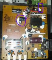 Da ich dem Monitor noch nicht wieder die Frontblende aufgesetzt habe, dachte ich mir ich finde heraus welches der Komponenten das Fiepen verursacht, leider habe ich dafür kein gutes Gehör, ich kann weder fiepen einer Spule noch das zugrunde eines Kondensators auseinander halten.