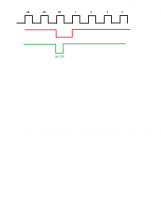 Vorgesehen ist eigentlich das nur in der Zeit, wo CLOK (50) auf H ist (LED-rot), auch LED-grün auf H ist, so wie auf Diagram unten.
