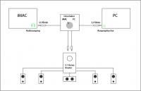 In meinem Büro habe ich 2 Rechner 1xPC/1xIMac. Nun möchte ich eine Schaltung haben, die es erlaubt entweder den PC oder den iMac an einer 5.1 Lautsprecheranlage (Hometheater inkl. Verstärker) laufen zu lassen.