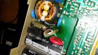 Schon komisch, dass der Hersteller dort diesen Typ eingesetzt hat. vor der Drossel sind normale Folienkondensatoren eingesetzt, welche noch einwandfrei tun.