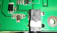 Leider hatte ich keinen Netzteil. Ich brauchte einen 5V DC Netzteil, welche einen etwas kleineren Anschluss brauchte. Diese habe ich einem anderem Netzteil entnommen und zusammen geschustert. Das doofe ist, dass ich eine falsche Polung geschafft habe. Somit hats schnell geraucht, und dieser rot eingekreiste Teil auf dem Bild ist durchgebrannt.
