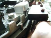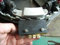 2. Das silberne Kästchen sind die beiden Dauermagneten. Auf dem ersten Foto sieht man, dass die beiden Magneten von den Zähnen verdeckt werden. Wird die Kupplung getreten, springt der Zahnkranz um einen Zahn weiter. Jetzt sind die Dauermagneten nicht mehr verdeckt.