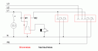 Warum machst du nicht Nägel mit Köpfen ? Das AR12DX-230V ist ein Stromrelais mit Messwandler. M1 und M2 werden in die Leitung L1 eingeschleift und überwacht somit den Strom durch L1. Ob nun am L1 eine 230 V Schukosteckdose oder eine Drehstromsteckdose mit L1 ,L2 und L3 hängt interessiert das Teil nicht. Bei Überschreiten des voreingestelten Stromes im L1 schaltet dieses Relais seinen Potentialfreien Umschaltkontakt um. An diesen Umschaltkontakt kommt das Nachlaufrelais und an das Nachlaufrelais dein Saugstauber!