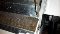 Ich habe die Blende der Tür entfernt und mir alles angeschaut. Mir scheint, dass alles etwas verzogen ist. Die Seitenwände habe ich nicht ausgebaut und so weiß ich nicht, wie unten die Federn beschaffen sind. An der Dämmung unten musste ich das Blech bei der Schraube etwas umbiegen, damit das Scharnier "vorbei" kommt (s. Bild).
