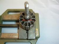 Die Wicklung muß fixiert weden. Meißtens sind Keile in die Ankernuten geschoben und die Anschlußdrähte am Kollektor sind mit Gewebeband umwickelt. Außerdem ist das Ganze noch mit Harz vergossen.