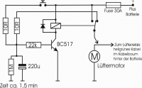 Nein so geht es nicht ! Der Elko wird nach Minus kurzgeschlossen. Demzufolge muss der Lüftermotor auch in der Minusleitung geschaltet werden und nicht in der Plusleitung!