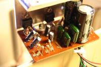 | Außerdem dimmt dann das Einschalt-Kontrolllämpchen herunter. | Entweder arbeitet einer der beiden Verstärker aus irgend einem Grund in einen Kurzschluß, oder das Netzteil hat einen derben Fehler.