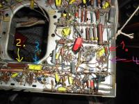 Von Pin 9 (lila Pfeil ist die PY81) geht ein Drahtwiderstand weiter ( roter Pfeil)