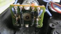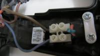 Hinter dem Schalter liegt noch die Spannung an. An der Platine kommt keine mehr an. Daraufhin habe ich nochmal die Heizschlange untersucht und endlich den Defekt direkt hinter der Anschlussklemme gefunden. Der Heizdraht ist dort gebrochen. Der dünne Spalt ist kaum zu sehen.