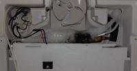 Nachdem ich die Blende entfernt hatte fiel eine starke Vereisung einer der Kühlmittelleitungen auf (siehe Bild 1). Nachdem ich diese abgetaut hatte bildete sich das Eis nach relativ kurzer Zeit erneut (Bild 2). Das Verdampfergerippe scheint vollständig eisfrei zu sein.