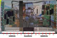 Aber seit dem wiedereinbau des alten Y-Buffer-Board sieht der Fernsehr jetzt so aus. Es hat sich ein Senkrechter schwarzer Balken gebildet (den waagerechten kann man ignorieren, siehe Vorgeschichte). Der Sprung ist übrigens genau da wo jetzt der senkrechte schwarze streifen ist.