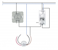 Edit: Beim ursprünglichen Schaltbild mit Wechselschalter müsste die Lampe dann aber eig. immer leicht glimmen, sie hängt ja einfach nur am L1 und der andere Kontakt in der "Luft", oder nicht? Die Uhr und Schalter hängen quasi nur mehr an einer gemeinsamen Phase, sobald der Schalter geöffnet ist, mehr Verbindung besteht nicht mehr. An dem Punkt harkt es bei mir noch.