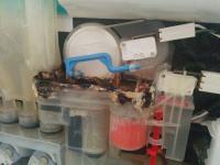 So, Freunde der Nacht. Der Geruch von durchgebranntem, den meine Frau gemeldet hatte, ließ mir keine Ruhe. Also hab ich die komplette Maschine abgeschnüffelt (  fragt nicht...) und ta-daaa.