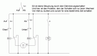 Edit: S1 und S2 sind deine Endschalter , Auf und Ab sind die Kontakte des Wechslers vom Rel3