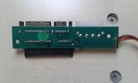 Da man die LEDs nicht einfach parallel anschließen kann, habe ich mir einen HDD Wechselrahmen besorgt, bei dem eine LED dauerhaft leuchtet, diese nutze ich nun als Power LED und eine, die die HDD Aktivität anzeigt, aus diesem Rahmen habe ich jetzt nur die Platine genutzt (Fotos), die vorhandenen LED hatten 3mm, das externe Frontpannel ist aber für 5mm LEDs ausgelegt, deswegen mußte ich halt neue haben.