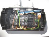 Ich hab mal das Foto mit den Drahtbrücken eingefügt um zu verdeutlichen wie ich das gemeint habe, vom mittleren Taster aus beide Adern zu versorgen. Genau darin liegt das Problem, dass ich dann immer Spannung aliegen habe auf beiden abgehenden Adern, auch wenn kein Motor angeschlossen ist, denn es ist oben nur gebrückt, deswegen der Gedanke mit der Zenerdiode. Wie kann ich das anders lösen, so dass es Funktioniert?