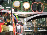 Ich habe im Anhang ein Bild des "Innenlebens" so wie es in unserem Receiver ist, angehangen. Die beiden dicken Elkos (grün markiert) hatte ich gestern erneuert, ohne Ergebnis. Die drei Elkos links im Bild (rot markiert) habe ich heute noch erneuert, da sie obenauf etwas aufgebläht waren und siehe da, Ton ganz normal nach dem Einschalten.