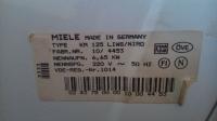 Lediglich einen Aufkleber an der Seite, der von der Prüfung stammen könnte. Als Typenschild finde ich das Ding aber etwas zu windig. Obendrein weil hier die Angabe des Gerätetyps nicht erkannbar ist. Es gibt ja einige Varianten des Miele DE LUXE H 812 (mit anderen Buchstaben hinter "812").