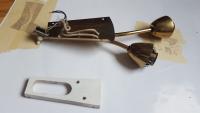 Wie gesagt, die Leuchte ist mir nicht ganz geheuer: Die Wand-Befestigung ist aus Holz, darauf eine Abdeckung aus Messing (?) und Arme zu den Fassungen (selbes Material) ohne Schutzleiter etc.